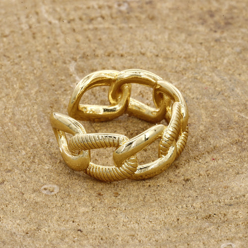 Antique Gold Circular Link Bracelet with Intricate Filigree and Ruby Accents