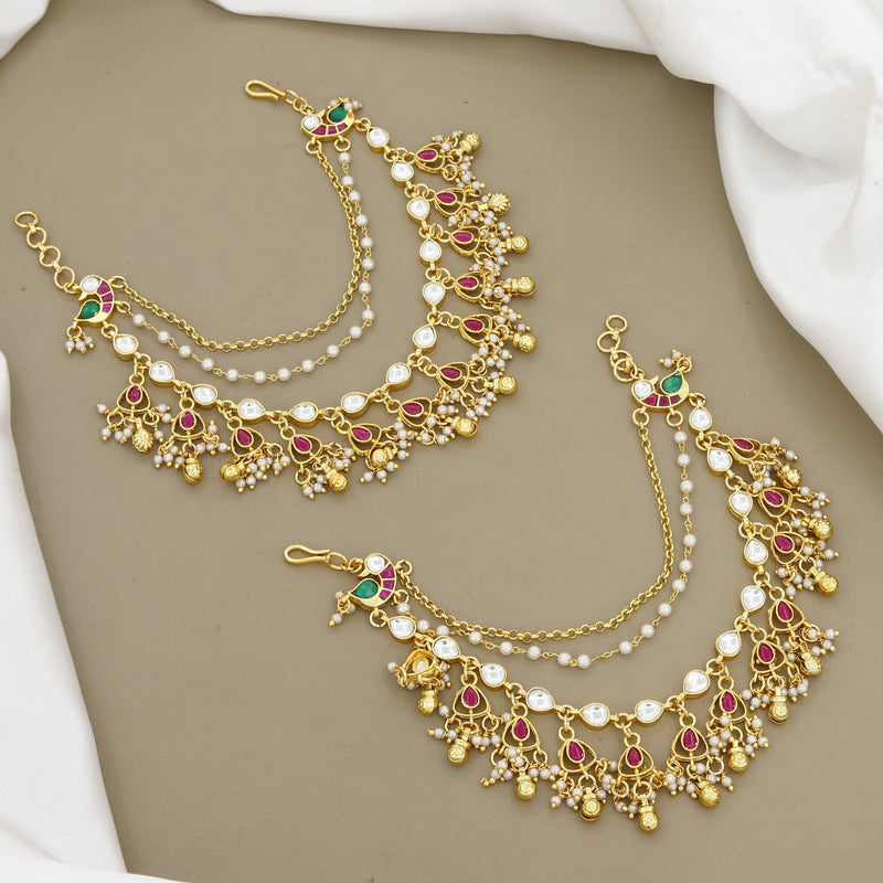 Traditional Indian Gold-Plated Peacock Kundan Meenakari Multi-Strand Bracelet