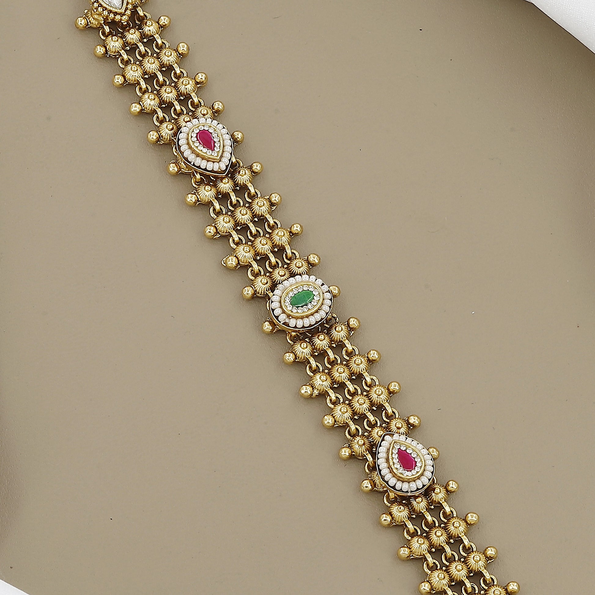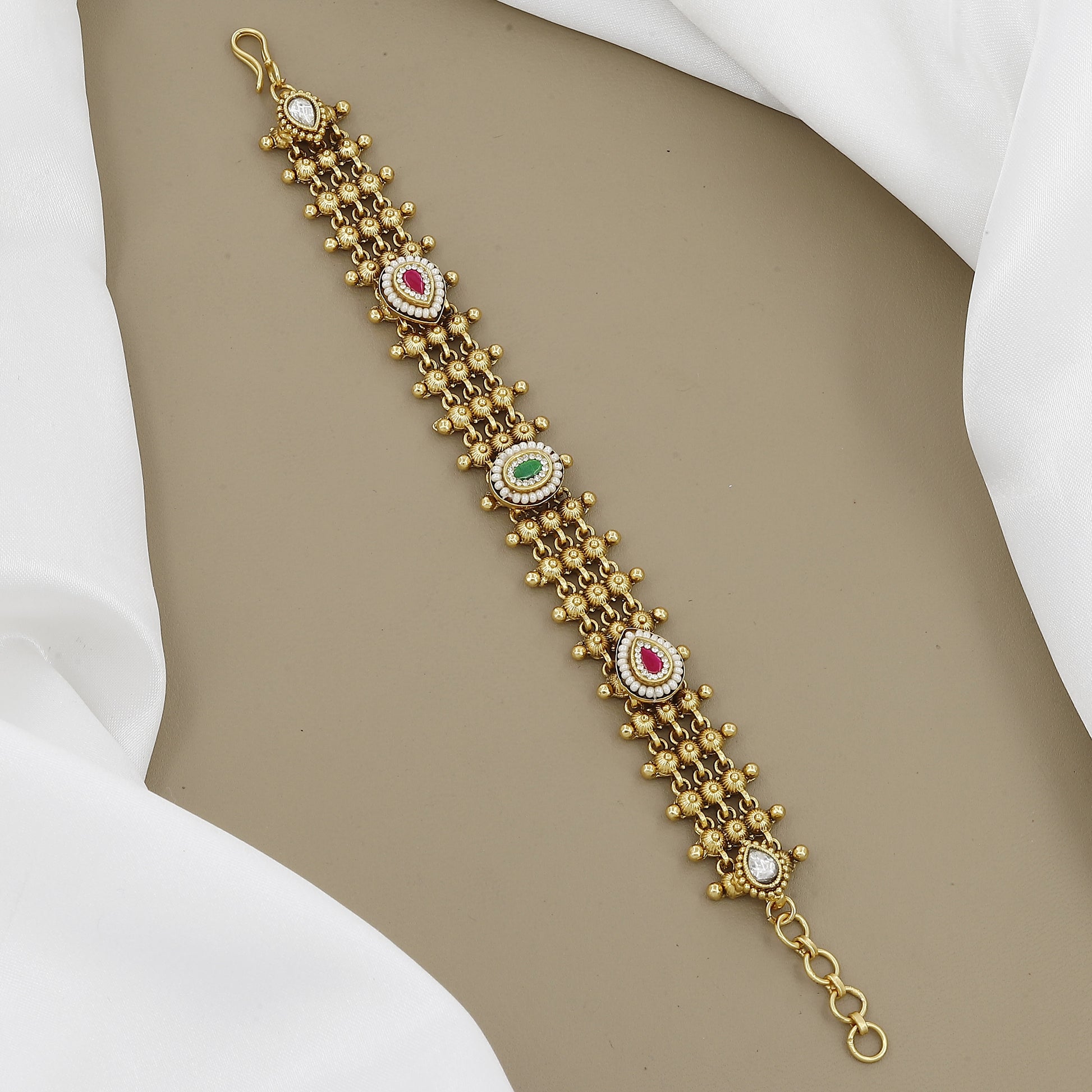 This elegant, antique gold-toned bracelet offers a beautiful blend of traditional texture and subtle color. It’s a versatile piece, perfect for adding a touch of vintage charm to both ethnic and contemporary outfits.