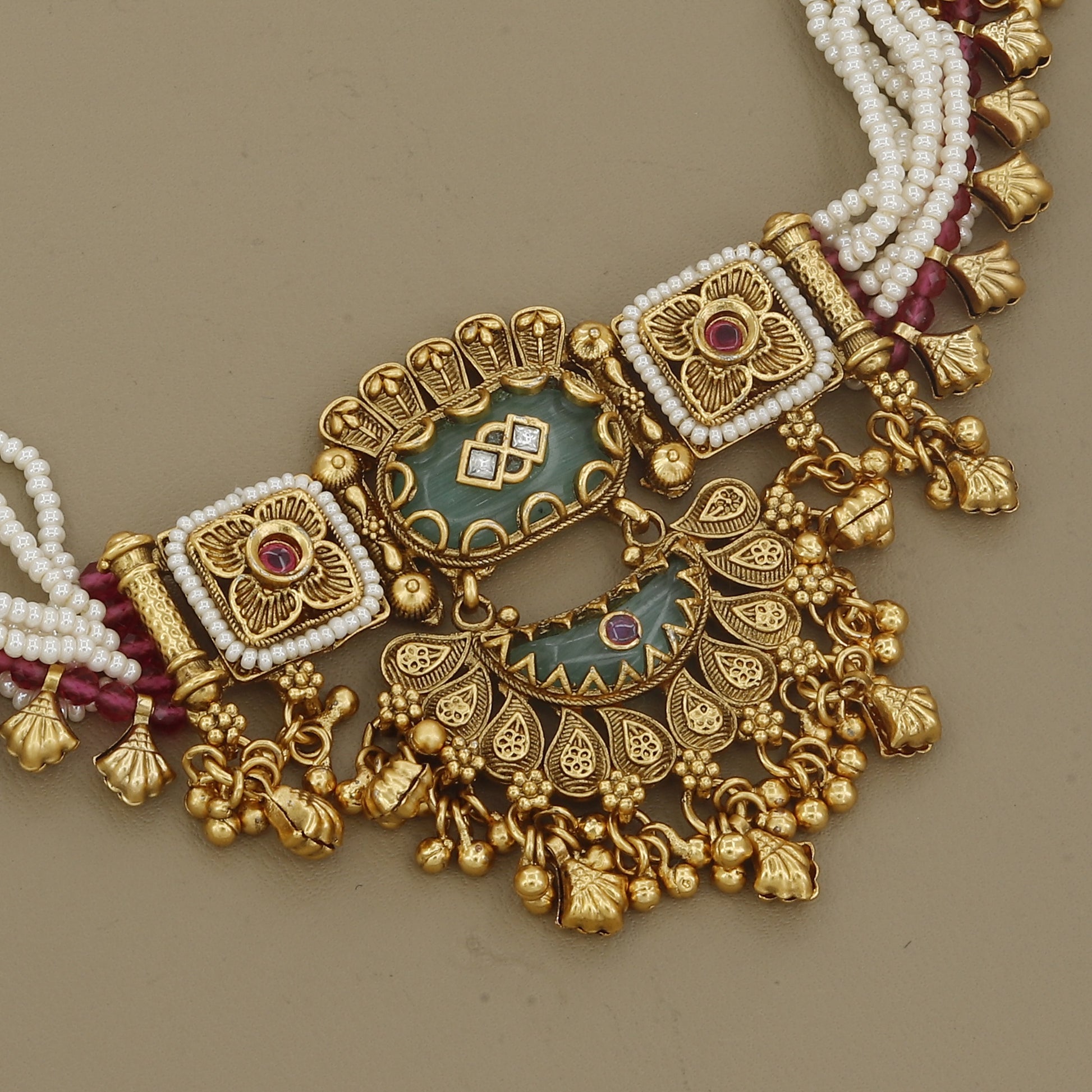 Antique Gold Toned Kundan Pearl Necklace Set