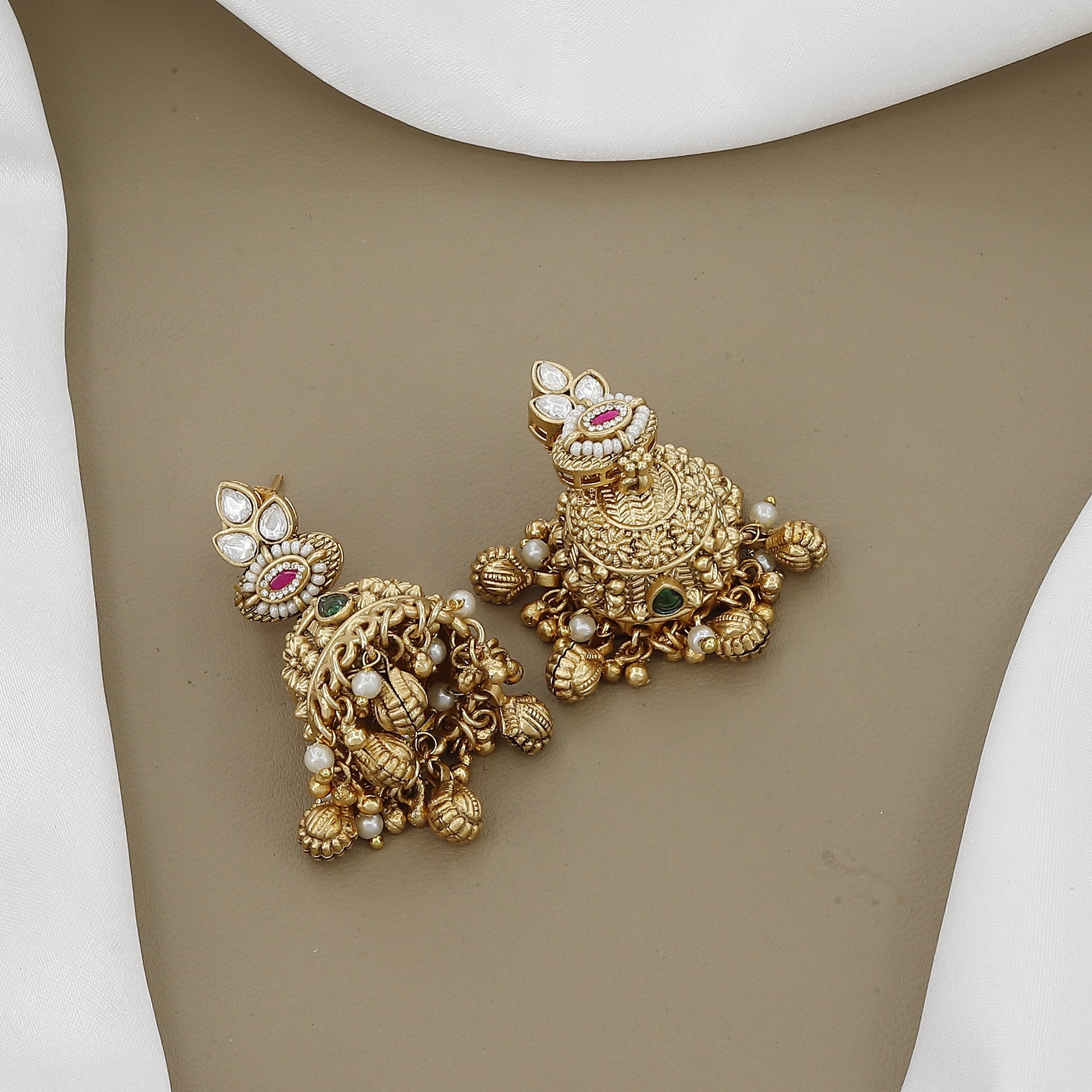 Artisan Pearl & Ruby Necklace Set with Grand Kundan Pendant & Statement Jhumkas