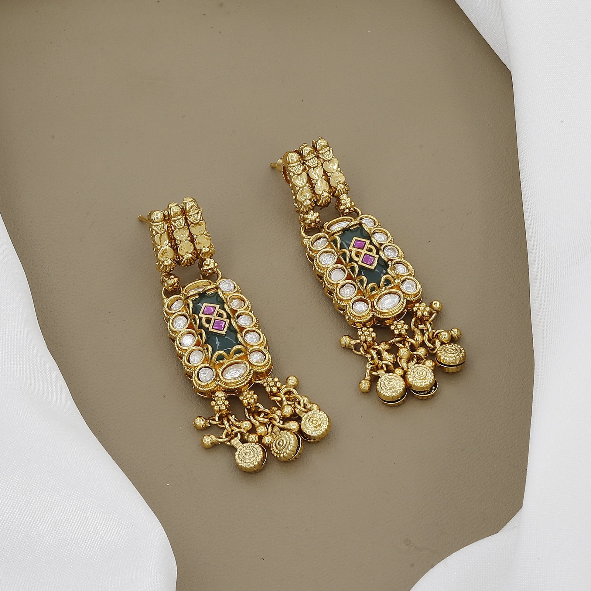 Step into timeless style with our handcrafted traditional necklace and earring set. This exquisite piece showcases an antique gold finish and is a must-have for your next wedding or festive celebration.