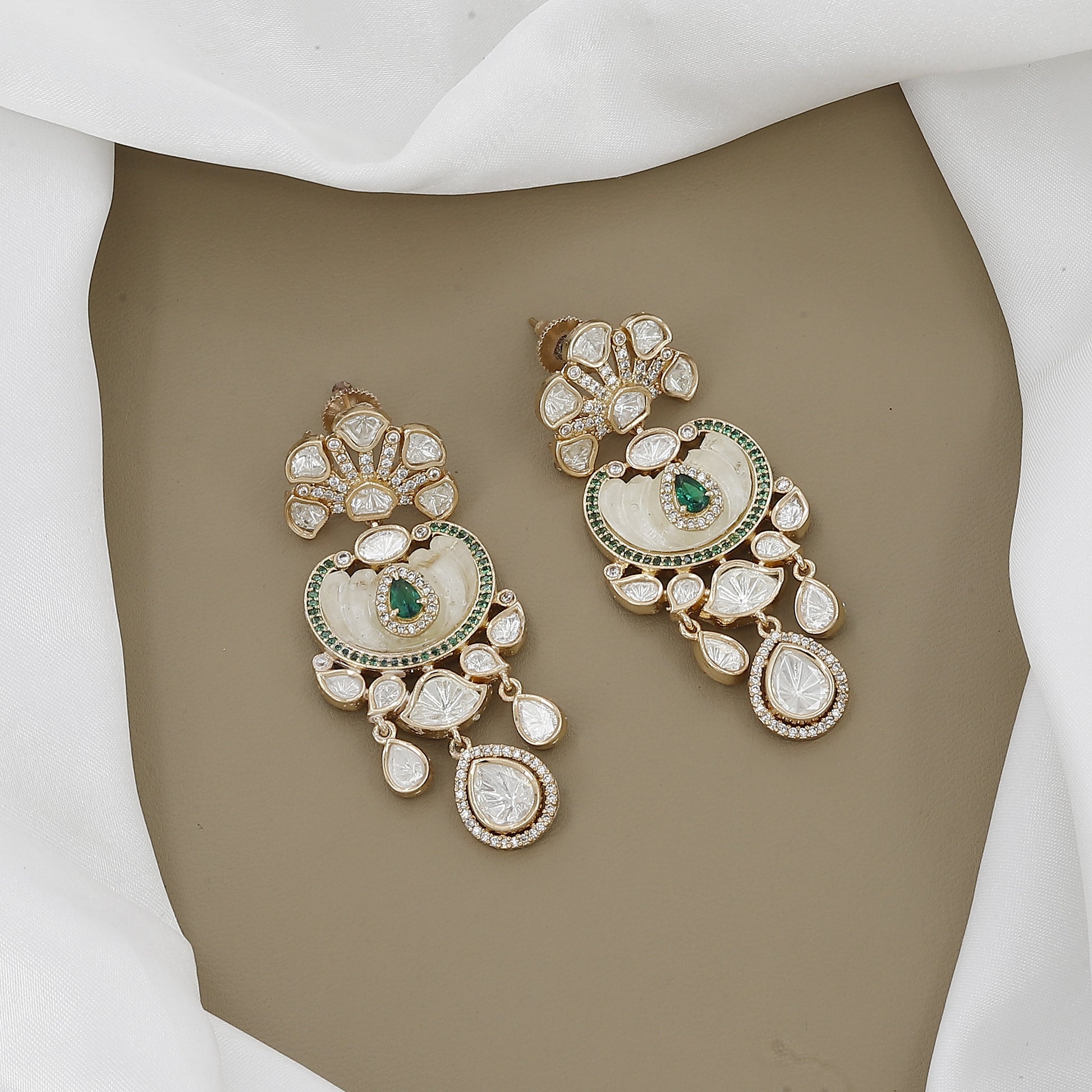 Polki & Stone Necklace And Earrings With Colors