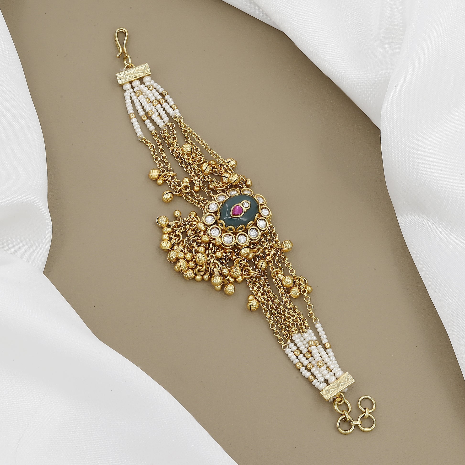 Traditional Gold-toned Bracelet with Multi-Chain Danglers & Pearls