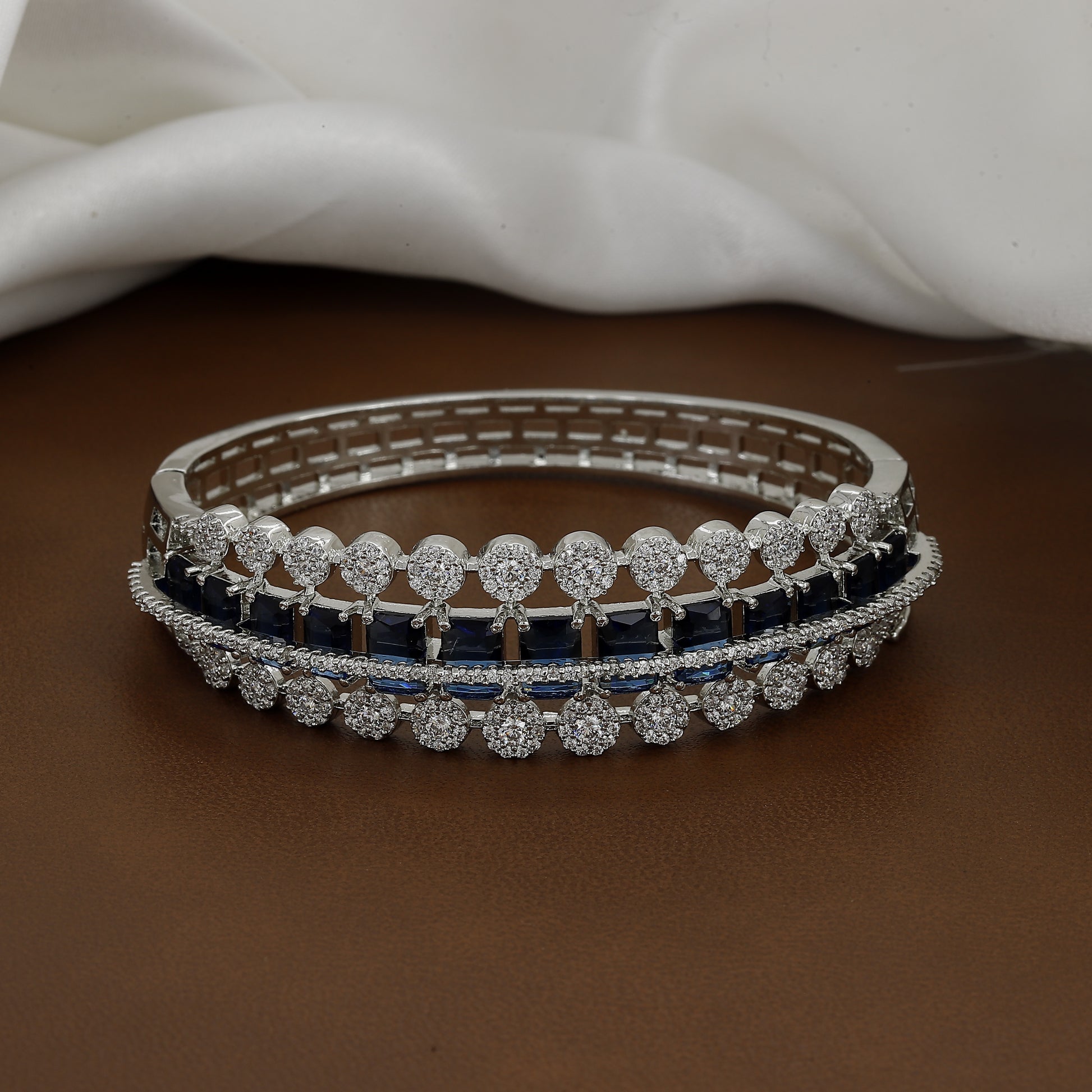 Triple Layer Diamond-Studded Silver Toned Bangle Kada With Colors