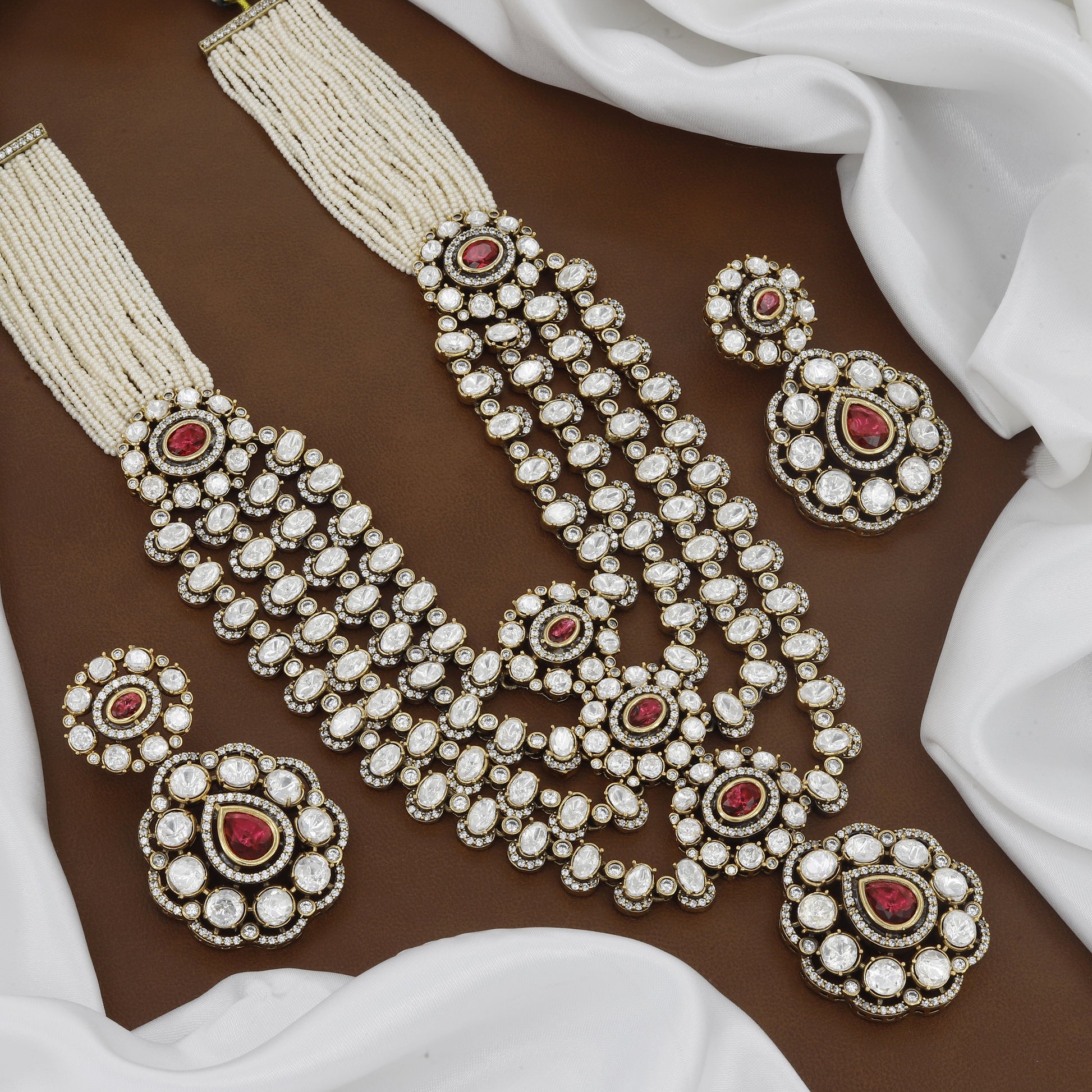 Victorian Polished Heavy Kundan Wedding Necklace Set